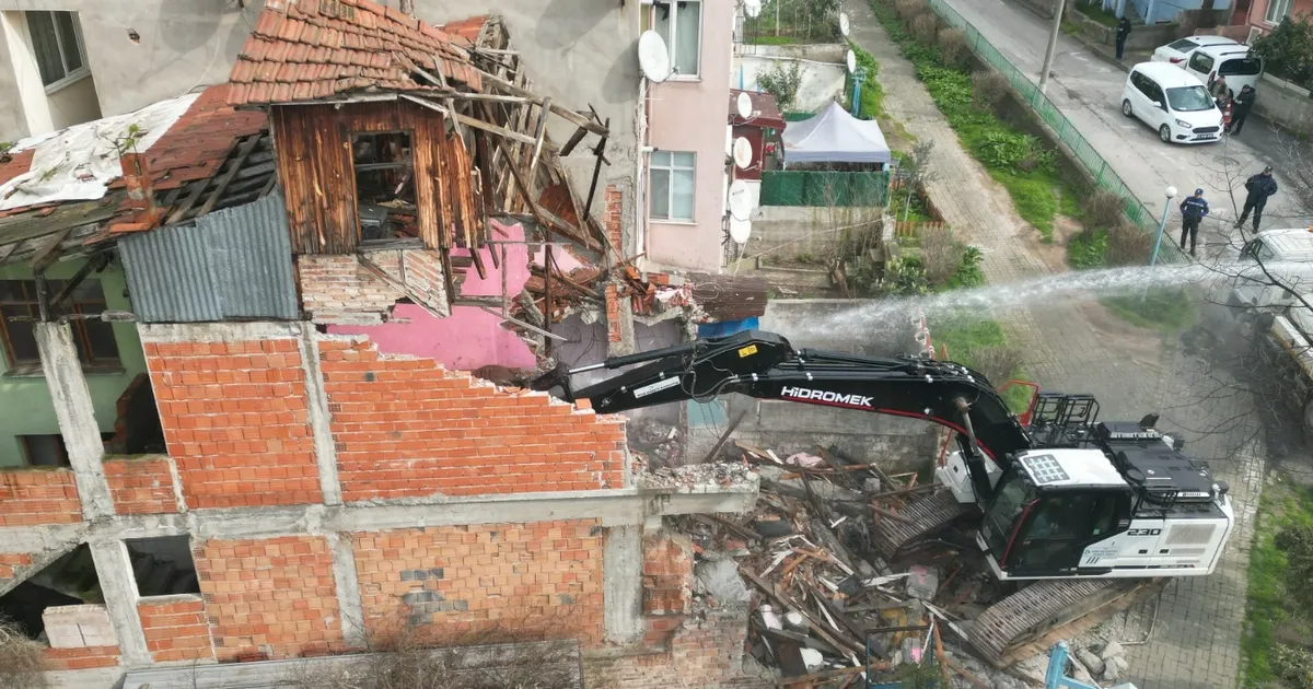 İzmit Kozluk’ta tehlike oluşturan metruk binaya yıkım