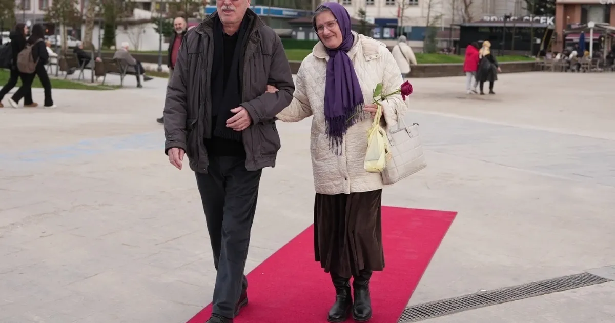 İlk anda halıya basmakta tereddüt eden çiftler, daha sonra el ele ve kol kola yürüyerek sürprizin keyfini çıkardı. Yürüyüşün ardından çiftlere kırmızı gül hediye edilirken, o anlara ilişkin fotoğraflar basılarak kendilerine takdim edildi.